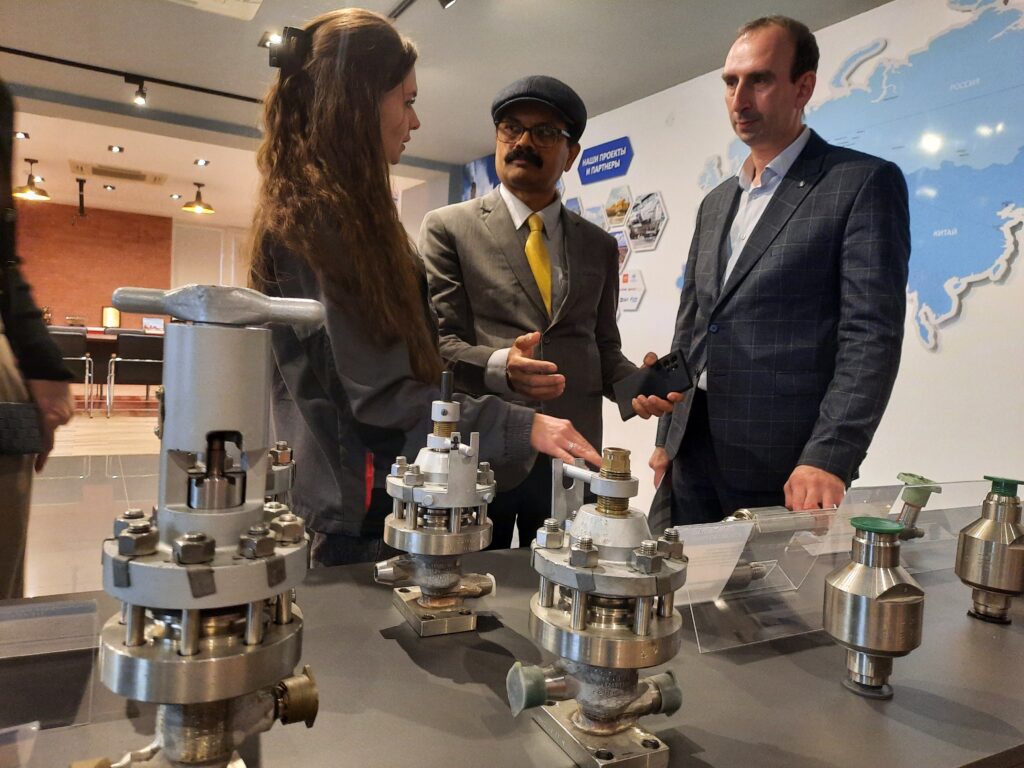 В ходе визита он провел инспекцию основной производственной площадки АО «Контур» (входит в МК «Сплав»). Вместе с коммерческим директором Корпорации «Сплав» Юлией Пенязь и директором по качеству Александром Касрадзе обсудили объемы и сроки поставок арматуры для строящихся 5-6 энергоблоков АЭС Куданкулам и процедуру оценки соответствия оборудования экспертами ИКАЭЛ.